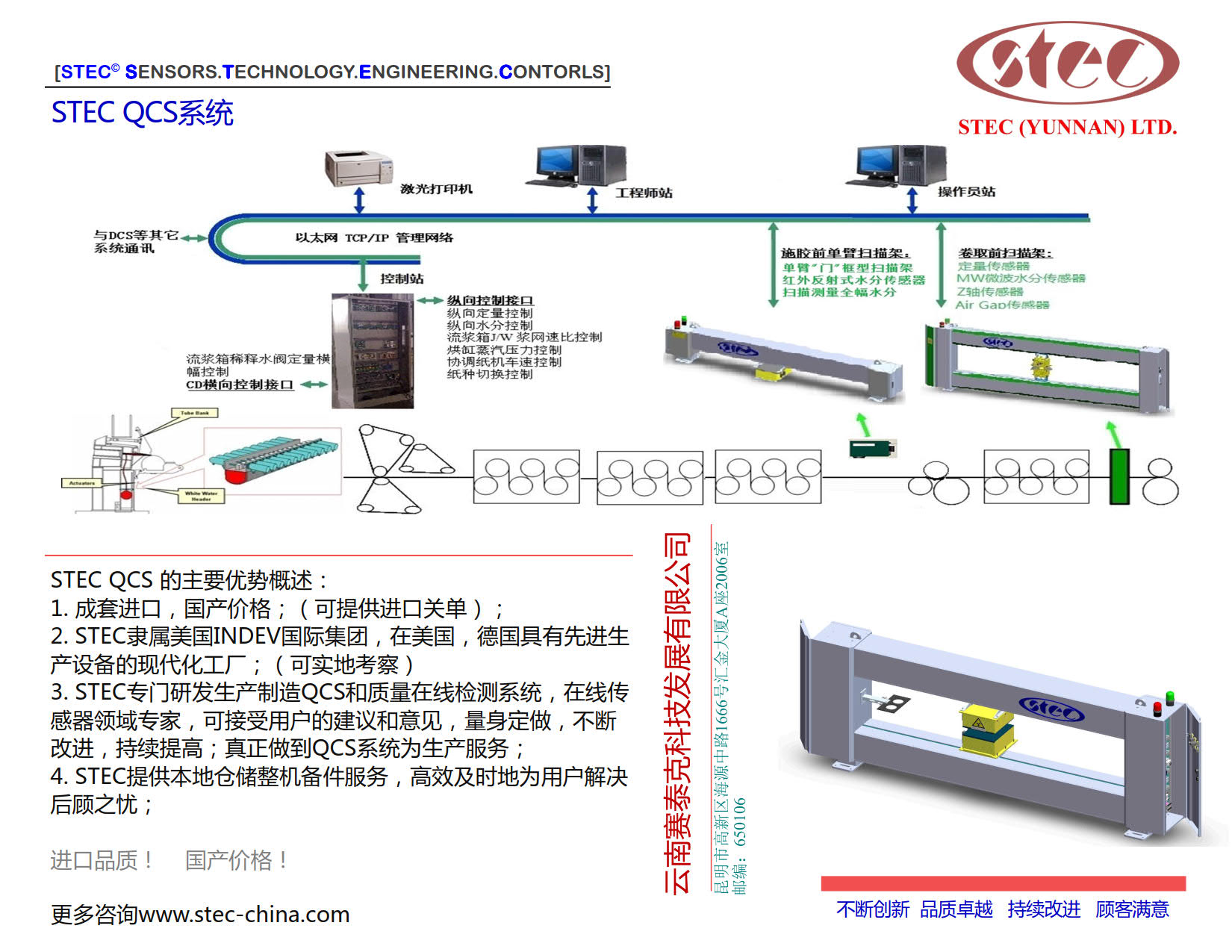 QCS扫描架纸张定量水分灰分厚度颜色光泽度在线检测控制系统